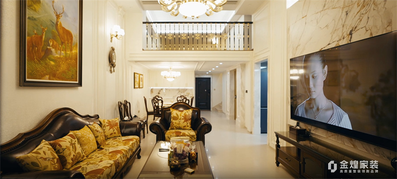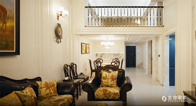 從客廳的皮質(zhì)沙發(fā)、木質(zhì)茶幾、華麗的吊燈,到墻上的裝飾畫,都體現(xiàn)了法式風格的經(jīng)典元素。同時,整體色調(diào)以暖色為主,營造出溫馨的氛圍。