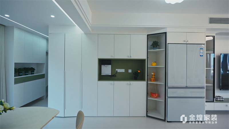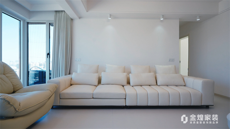 客廳內(nèi),大電視直接掛在墻上,下方配以簡約的電視柜,旁邊擺放著舒適的沙發(fā)和別致的休閑椅,沒有過多的繁雜裝飾,顯得寬敞又明亮。大窗戶的設(shè)計讓室內(nèi)光線充足,進(jìn)一步增強(qiáng)了空間的通透感。