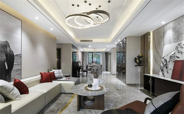 同時,客廳中巧妙融入了現(xiàn)代元素。簡約現(xiàn)代的燈飾和軟裝配飾,讓整個空間更加舒適和實用,也使整個客廳散發(fā)著溫暖宜人的氛圍。
