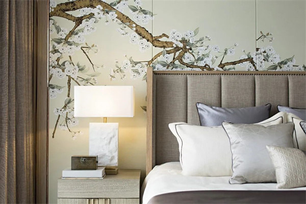 主臥中式元素與現(xiàn)代的簡約設(shè)計完美結(jié)合。床頭背景設(shè)計一幅大型中式花鳥畫作為背景裝飾,為整個房間增添了一份藝術(shù)氣息。大窗戶讓自然光線充盈房間,這樣的主臥空間,不僅是休憩的港灣,更是文化與現(xiàn)代生活的完美融合。