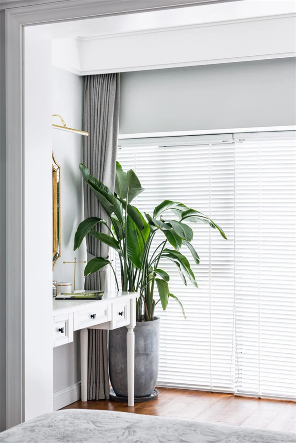 臥室的墻面選擇白色增加空間感和提升明亮度。地面采用原木色地板,為空間增添溫暖和自然感,營(yíng)造出一種寧?kù)o和清新的氛圍,強(qiáng)調(diào)整潔和有序,為居住者提供舒適和寧?kù)o的休息空間。