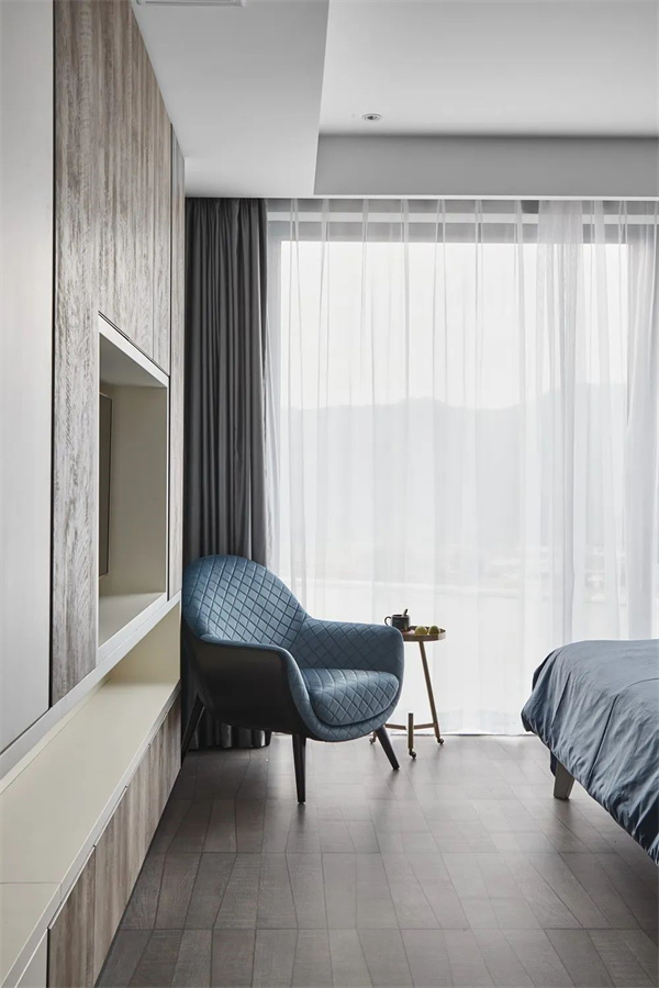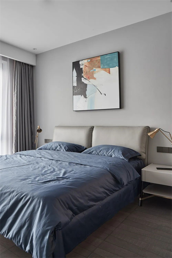 臥室精心挑選了高品質(zhì)的床具,搭配柔軟的床品和軟裝,柔和舒緩的色調(diào)給人寧?kù)o的感覺(jué)。在保證睡眠質(zhì)量同時(shí),考慮到大空間的照明需求,臥室布置的燈具都以溫柔的意象為主題,為空間營(yíng)造了貼心的守護(hù)感。