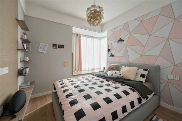 主臥背景墻采用豐富的拼色設(shè)計(jì),原木地板、暖色床品、軟裝掛飾完美搭配,營(yíng)造出寧?kù)o淡雅的睡眠環(huán)境。在簡(jiǎn)約溫暖舒適空間中,床頭的小臺(tái)燈在夜晚照亮屬于自己的小天地。