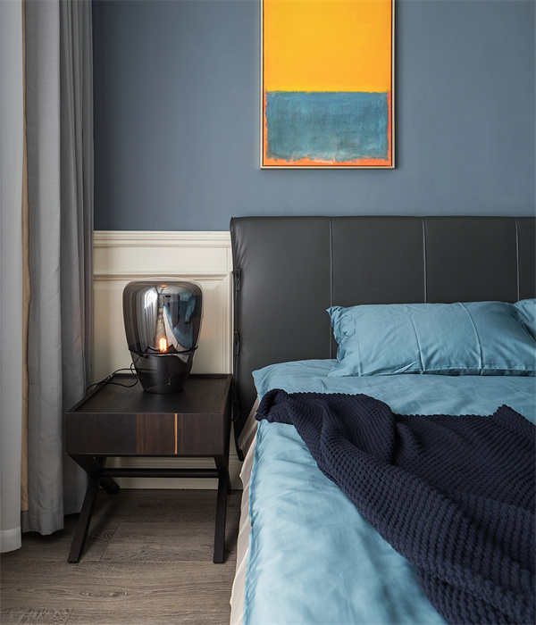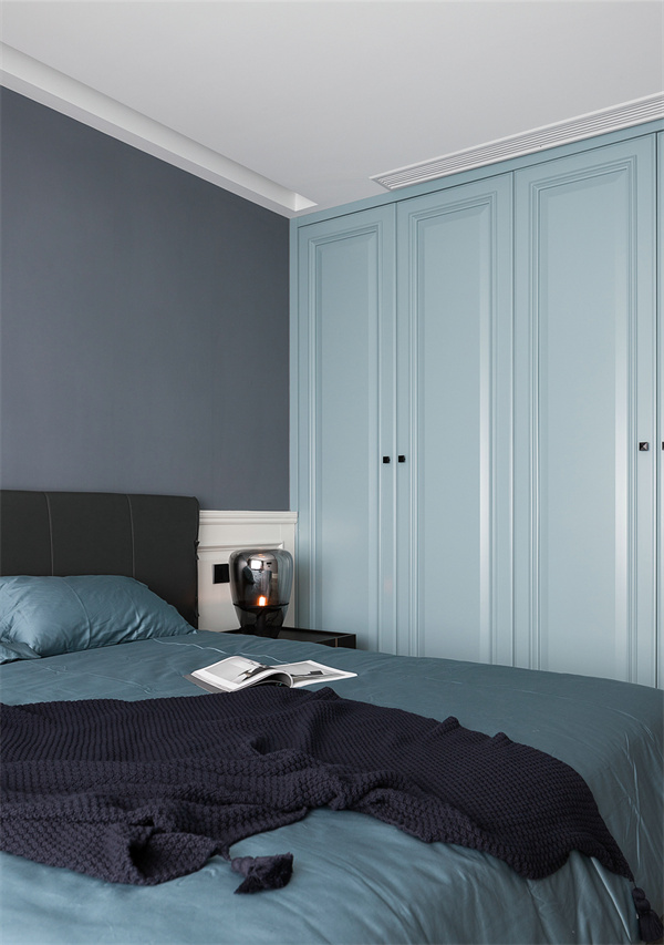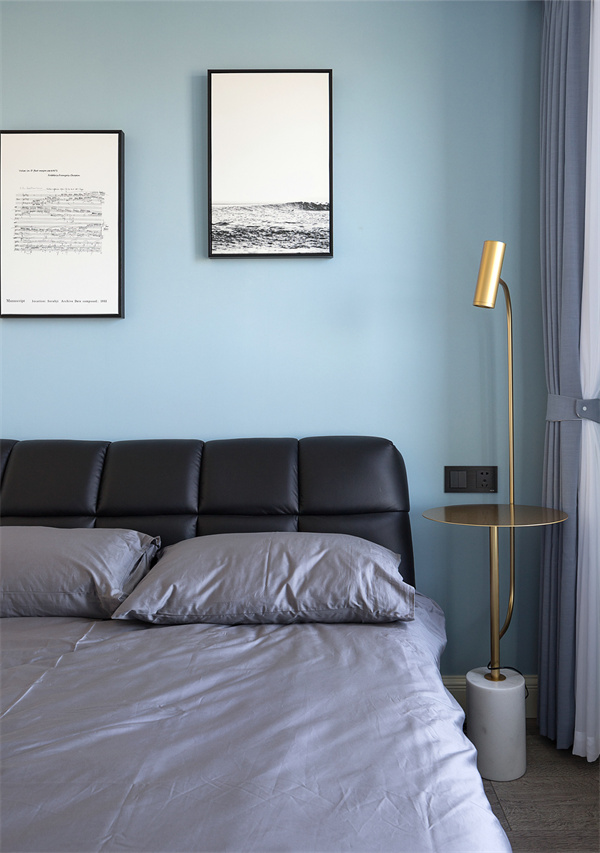 主臥采用時尚的設(shè)計語言,白色和淺灰色墻面搭配木色地板,突顯整體空間的清新與寬敞感。床品選擇了高質(zhì)感的純棉,搭配一些柔和的裝飾枕營造出溫馨的氛圍,簡約的床頭柜和燈具設(shè)計,為主人帶來舒適輕松的睡眠空間。