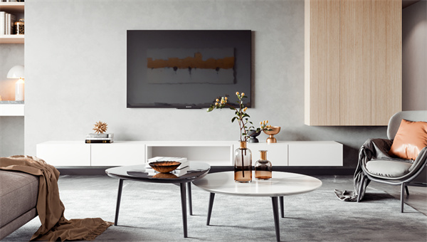 電視背景墻則是以極簡(jiǎn)的灰白色進(jìn)行搭配。定制整面的收納柜,擁有更多的收納空間,摒棄繁雜多余的裝飾品和色彩,創(chuàng)造出通透開(kāi)闊的感覺(jué),讓視野得到解放,整個(gè)空間顯得干凈、簡(jiǎn)潔。