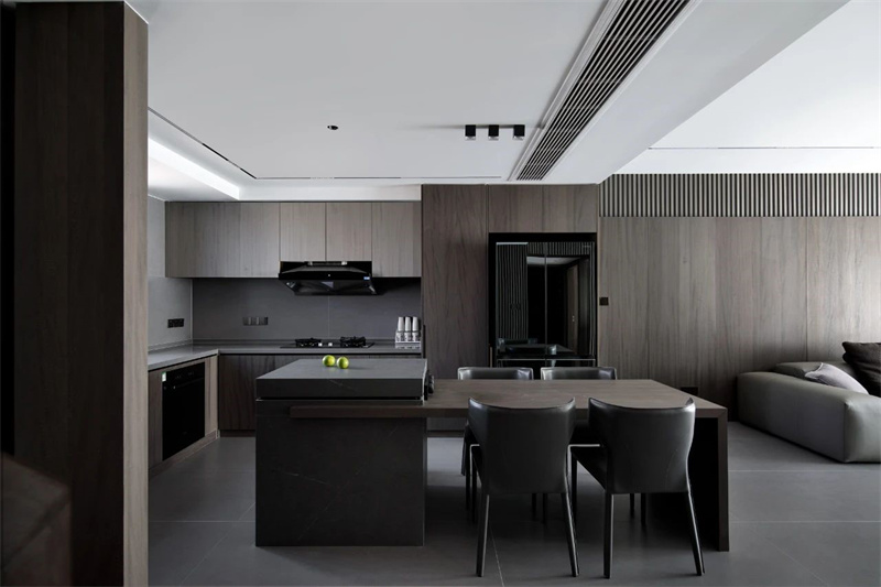 廚房并非單純的烹飪空間,而是一個(gè)展現(xiàn)藝術(shù)氛圍的創(chuàng)意工坊。黑白灰的整體色調(diào),搭配一體化定制設(shè)計(jì)的廚房電器,使整個(gè)廚房成為令人愉悅的創(chuàng)意角落,讓每一次的烹飪都充滿藝術(shù)的靈感。