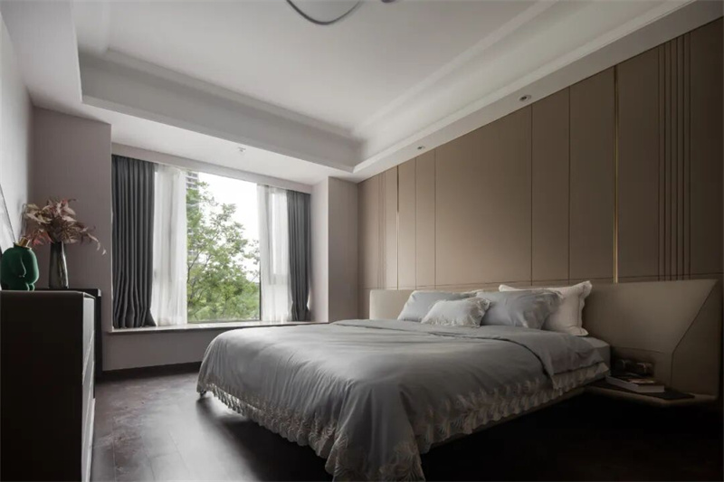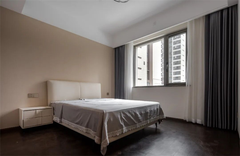 在臥室中,采用柔和而中性的色彩,如米白色、灰色以及淡藍色。這些顏色能夠為臥室營造出一種寧靜而放松的氛圍。同時,選擇原木色地板,并搭配中性色的床品和窗簾,營造出一個宜人的睡眠空間。