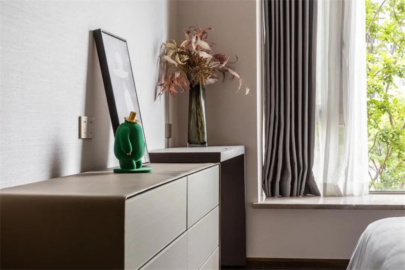 設計師在臥室中加入一些自然元素,擺放一些綠植花卉來增添一份生機和清新感。這些自然元素不僅能夠為臥室?guī)硪环葑匀坏拿栏校€能讓人感受到大自然的寧靜和平靜。