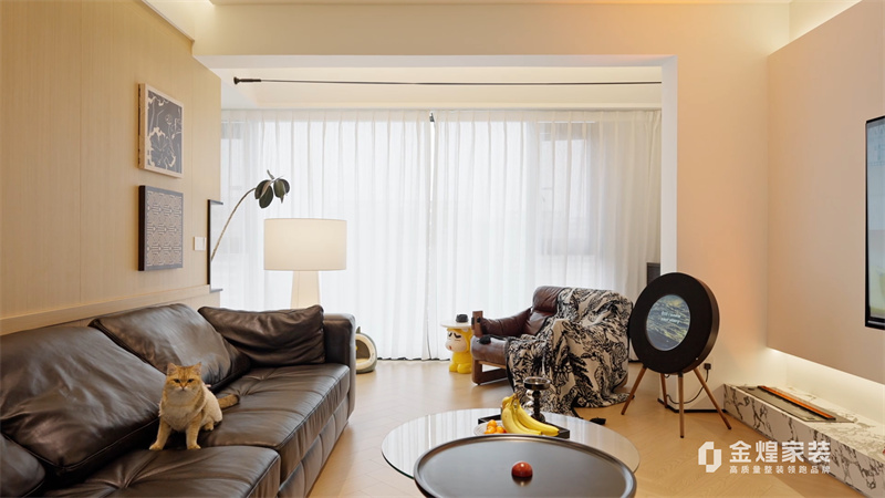這套案例是現(xiàn)代中古混搭風(fēng)格。整體色調(diào)以淺色為主,搭配深色家具,營造出簡潔而不失溫馨的氛圍??蛷d的布局開闊,沙發(fā)、茶幾和電視的擺放合理,既美觀又實用。